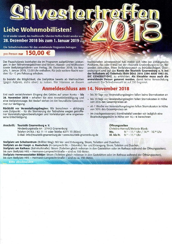 Bereits zum 24. Mal veranstaltete die Touristik Gnarrenburg e.V. das Silvestertreffen der Wohnmobilisten.