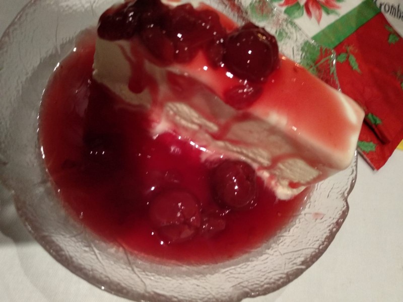 Danach gibt es Gemüseplatten, Fleischplatten sowie Kartoffeln und Soße. Zum Abschluß eine Nachspeise.