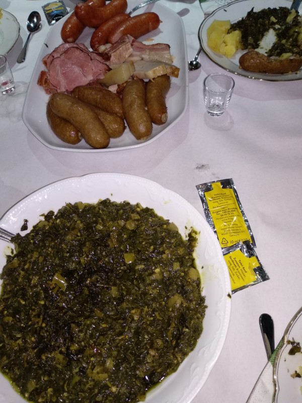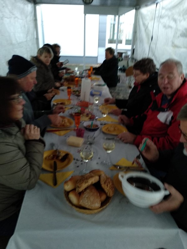 Am 30.12. findet dann der Marsch zum Kohlessen statt. Dieses Mal wurden wir mit dem Bus näher an ein etwas außerhalb der Gemeinde liegendes Lokal gefahren, bevor dann der restliche Weg zu Fuß mit "Verpflegungs-Bollerwagen" angetreten wurde.