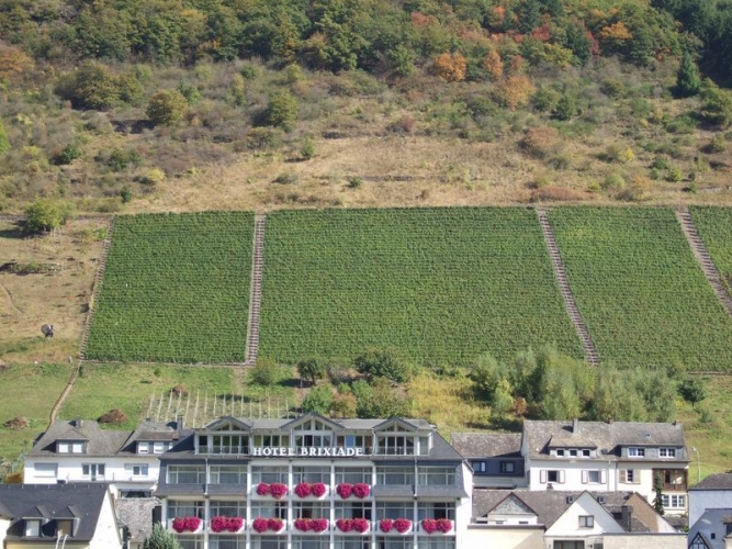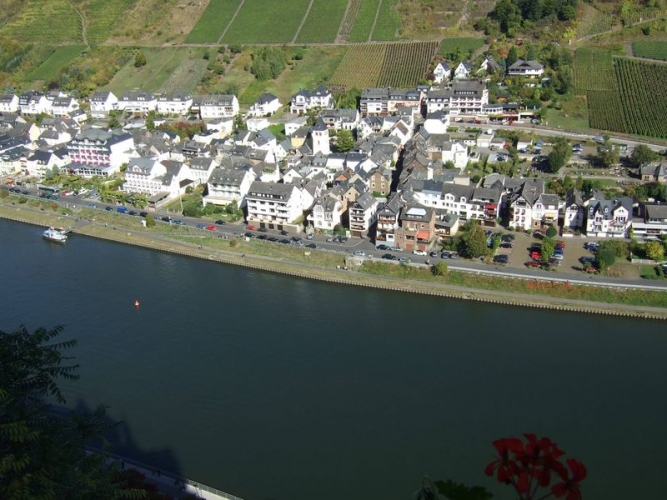 Die Fahrt dahin verlief für uns sehr abenteuerlich. Leider war die Umtauschaktion meines nicht mehr funktionierenden LKW/Womo-Navis bei Reiseantritt noch nicht abgeschlossen und wir mußten uns mit einem PKW-Navi begnügen. Im “Flachland” alles unproblematisch. Von Koblenz nach Cochem führte uns das Navi aber über eine Bergstrecke, auf der ich “Blut und Wasser geschwitzt” habe. Selbst im 2. Gang war die vorgeschriebene Höchstgeschwindigkeit von 30 km/h (auf der Strecke ist höhere Geschwindigkeit auch wohl Selbstmord) nicht zu halten. Immer wieder mußte ich die Bremse benutzen. Um diese nicht zu überhitzen, bremste ich immer fast bis zum Stillstand ab und ließ dann den Wagen bergab langsam wieder beschleunigen.