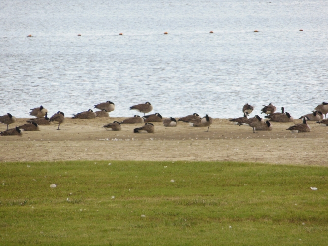 Am Oldambtmeer angekommen nach ca. 4 km blickten wir auf einen Badestrand, der mangels Badegäste von Gänsen bevölkert war