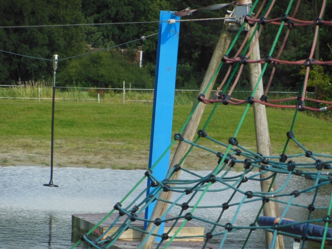 Links vor der Schranke befindet sich ein kleiner Badesee, den Kinder am späten Nachmittag und Samstag auch nutzten