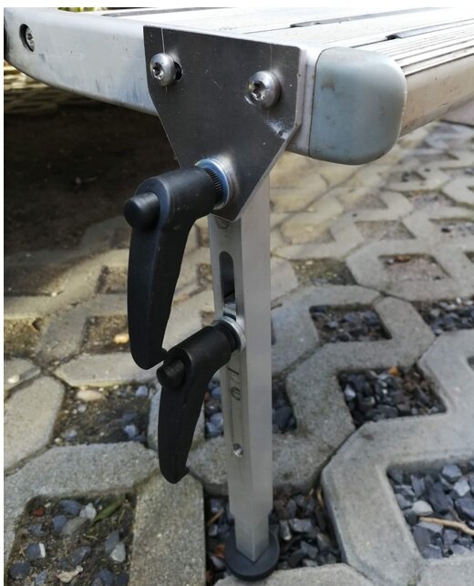 Freddy hat jetzt ein neues Befestigungsset gebastelt. Damit können die Stützen auch dauerhaft an meinem Carthago angebracht werden.