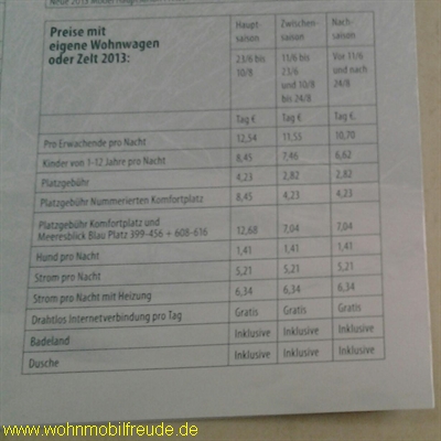 Hier die Preisliste