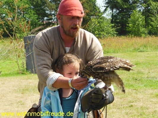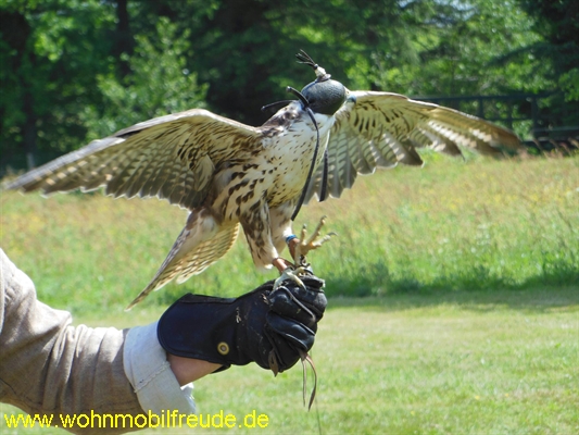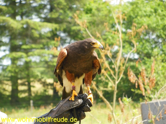 Wir hatten Glück und konnten eine Falknervorführung mit unterschiedlichen Jagdvögeln sehen.