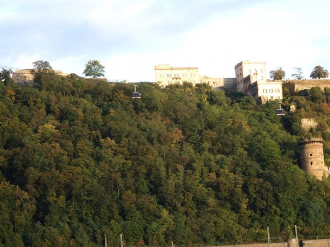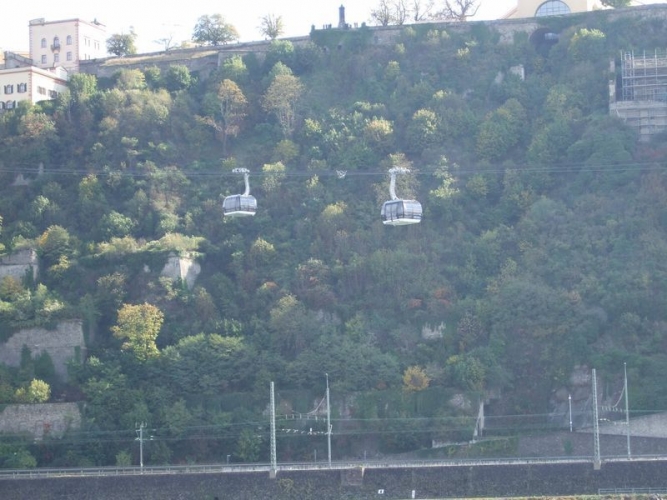 Wir hatten Glück und konnten einen wunderschönen Platz direkt am Rheinufer gegenüber der Festung Ehrenbreitstein belegen. Von unserem Platz aus konnten wir auch die Gondelbahn zur Festung aus beobachten. Diese nutzten wir später auch, um zur Festung zu gelangen. Wir wurden mit herrlichen Ausblicken verwöhnt.
