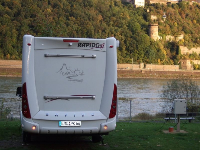 Der Campingplatz ist zwar in einer preislich höheren Kategorie einzustufen, der herrliche Blick auf Festung und Rhein vom Womo aus, war uns die Investition wert. Ver- und Entsorgung ist problemlos möglich. Wer einen leichten Schlaf hat, sollte diesen Platz meiden, denn die stetige Schiffahrt und der Bahnverkehr vom gegenüberliegenden Rheinufer ist gut zu hören.