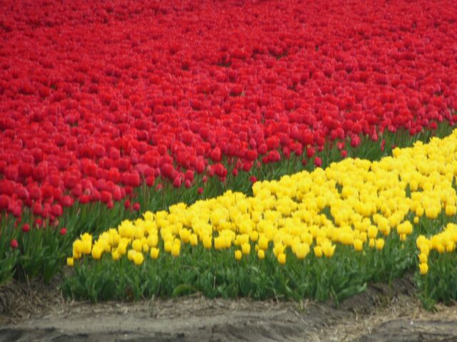 Blumenfelder schon abgemäht d.h. die Blütenköpfe sind zum besseren Wachstum und Vermehrung der Blumenzwiebeln entfernt worden.