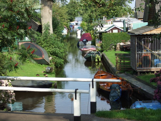 In der Annahme uns verfahren zu haben, wendeten wir und bogen in den "Ortskern" ab. Am Ende der Bebauung fanden wir ein Hinweisschild auf einen schmalen Radweg entlang der Grachten. Diesen befuhren wir und entdeckten schnell, das es nicht die Grachten waren, die wir früher schon mal besucht hatten. Trotzdem ließen wir uns von der Idylle faszinieren.