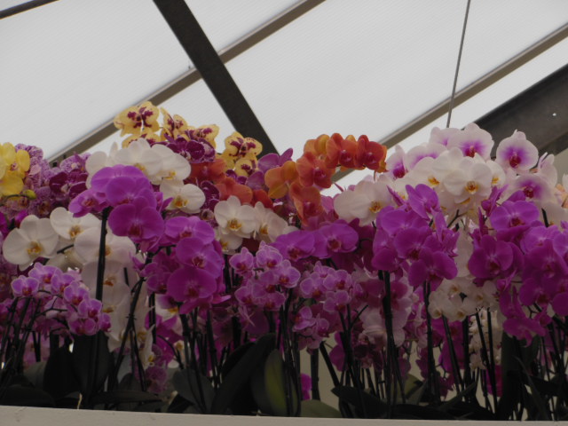 Ein riesiges Gelände mit vielen Blumenanpflanzungen sowohl im Freien als auch in verschiedenen Gebäuden.