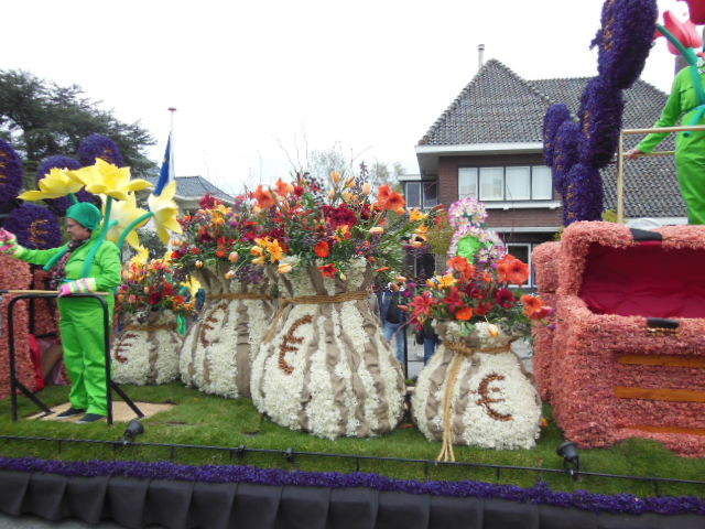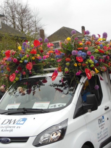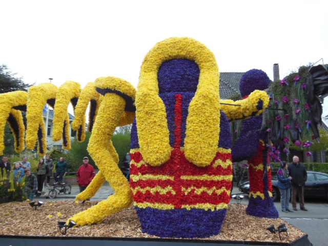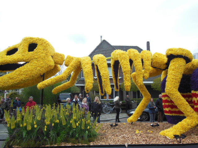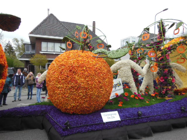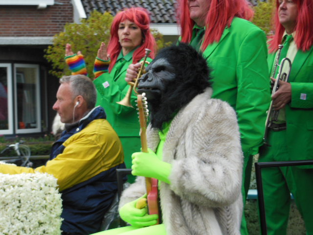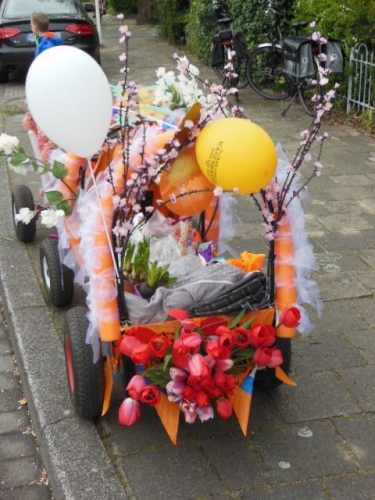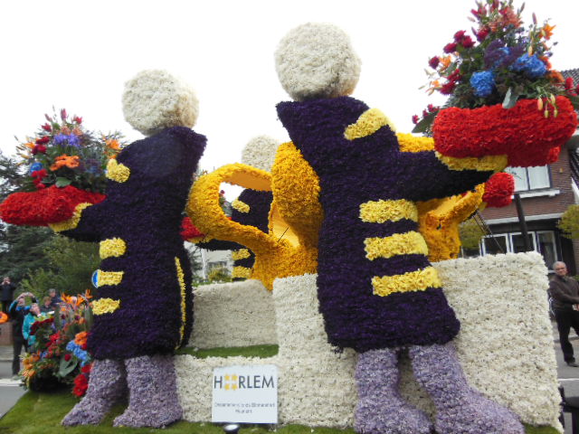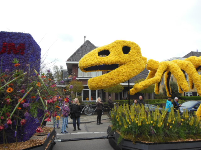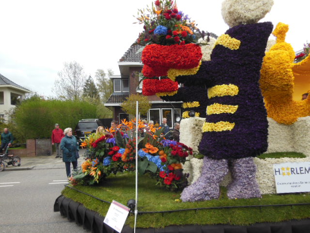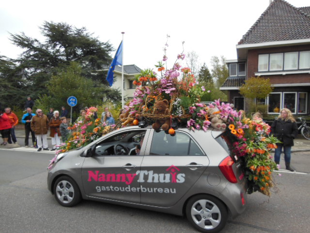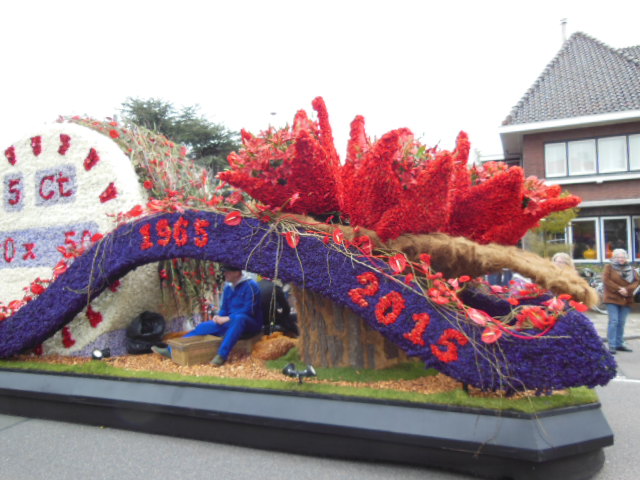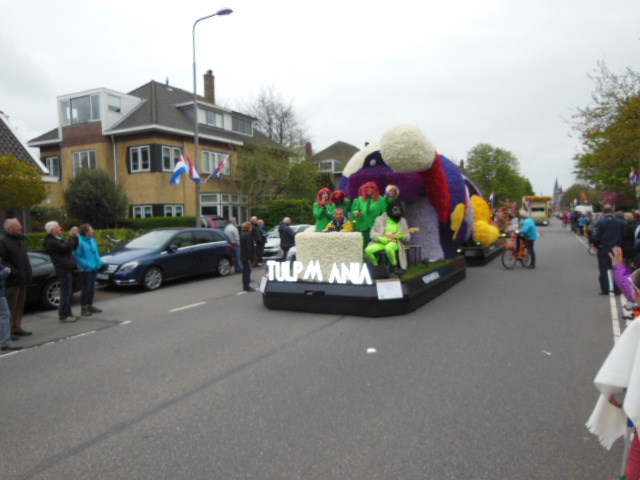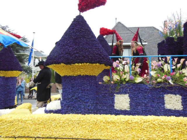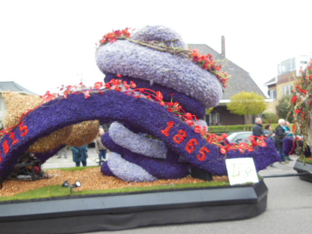 Alle waren mit echten Blumen dekoriert. Ähnlichen Umzug, in kleinerem Rahmen dann aber mit Papierblumen kannten wir bereits aus Appingedam.