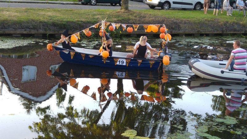 Am Freitagabend veranstaltete der nahe gelegene Wassersportverein eine Corsovaart. Geschmückte Boote, teilweise mit Pontons im Schlepp, gingen um 18.30 Uhr auf die Reise. Ideale Zeit um ein paar schöne Fotos zu machen. Die Rückkehr erfolgt dann im Dunkeln. Dann sind alle Boote beleuchtet.