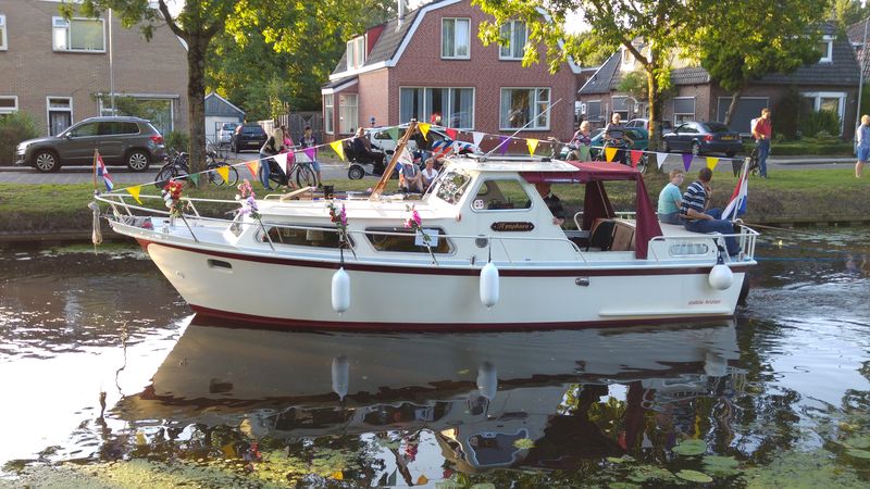 Am Freitagabend veranstaltete der nahe gelegene Wassersportverein eine Corsovaart. Geschmückte Boote, teilweise mit Pontons im Schlepp, gingen um 18.30 Uhr auf die Reise. Ideale Zeit um ein paar schöne Fotos zu machen. Die Rückkehr erfolgt dann im Dunkeln. Dann sind alle Boote beleuchtet.