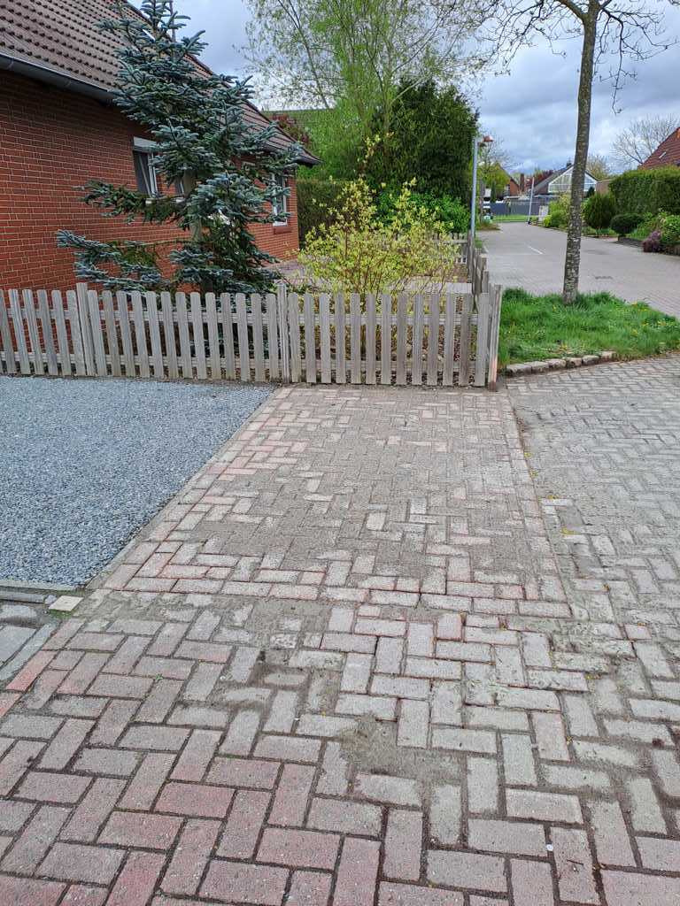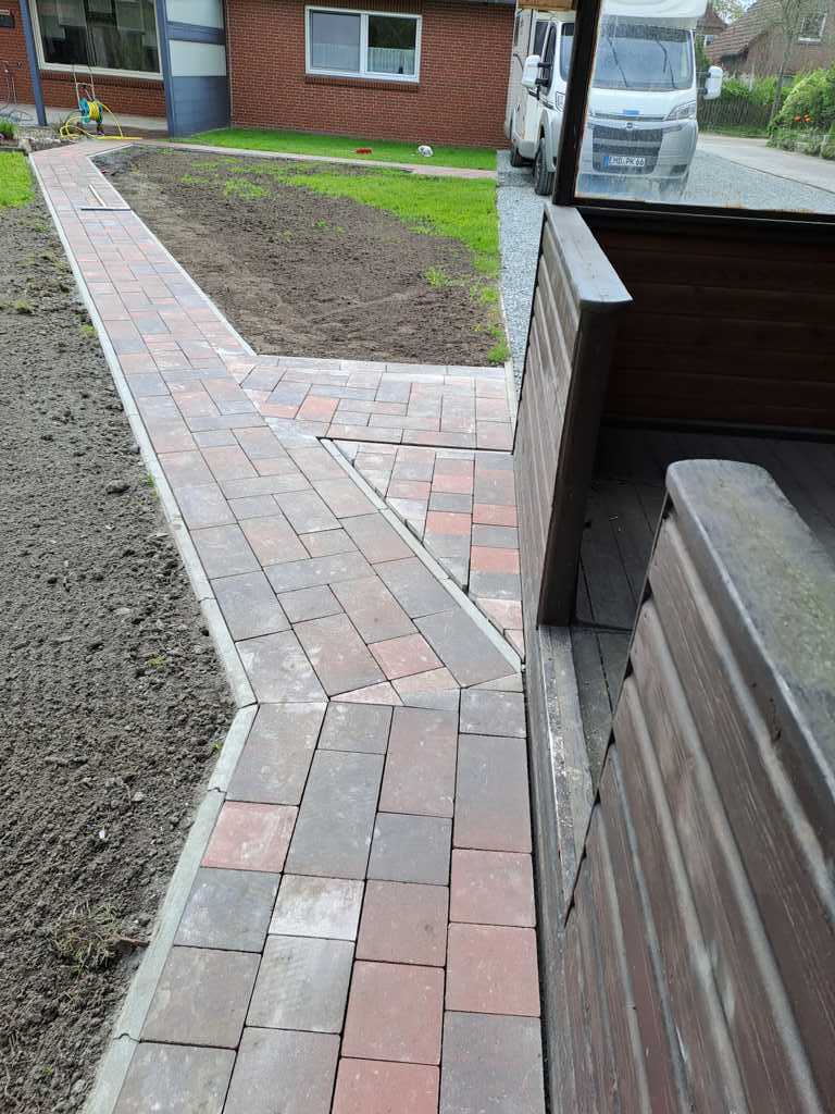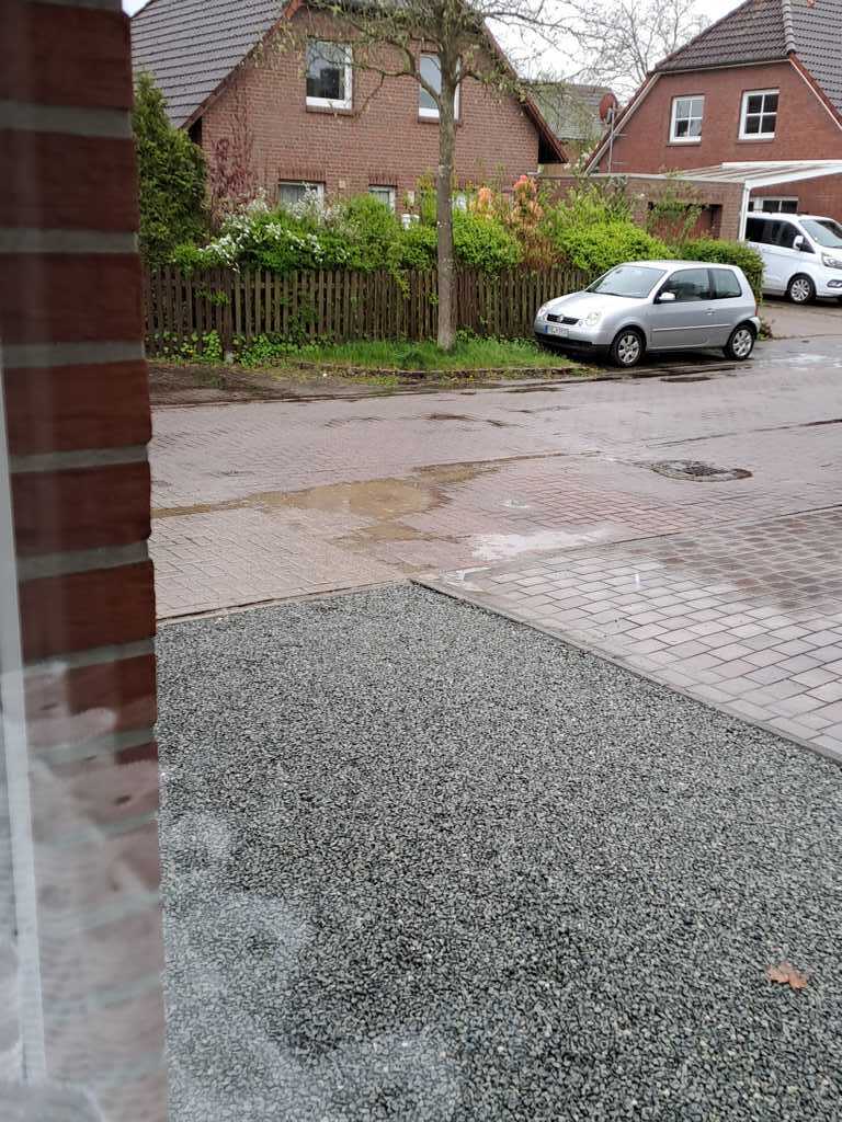 Außerdem soll noch eine kleine Fläche, angepasst an den Verlauf der Straßenpflasterung zum Nachbarn,