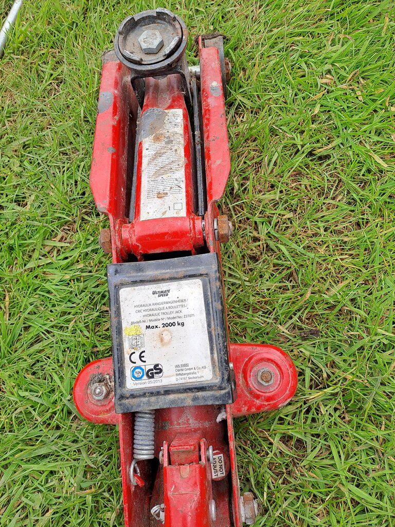 Zum anheben waren zwei Wagenheber erforderlich. Ich hatte noch einen uralten Hydraulikheber, der sogar mehr Gewicht als der Wagenheber der Firma heben konnte.