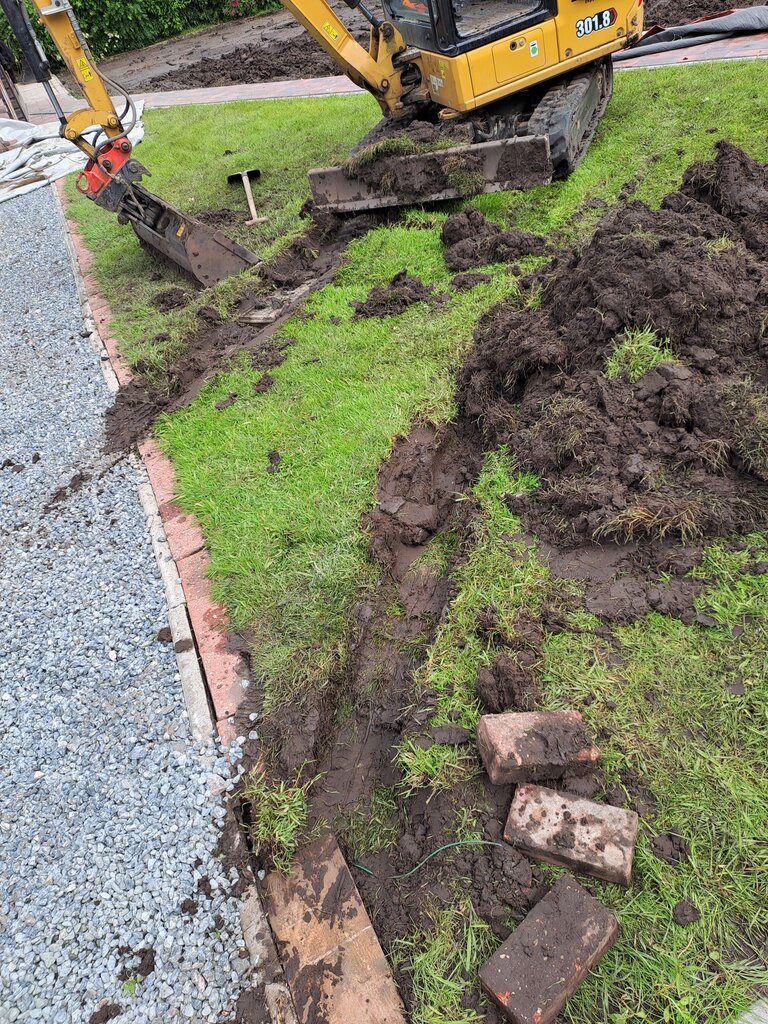 Der Vormittag endete dann mit dem Beginn der Vorplanierung der zukünftigen Rasenfläche.