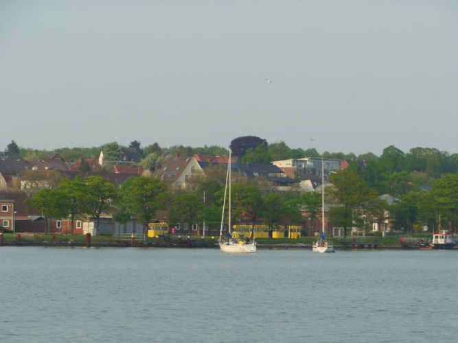 Bei noch herrlichem Sonnenschein konnten wir nach etlichen Jahren wieder die Kieler Förde betrachten. Die letzte Fahrt, noch mit dem Boot, liegt schon lange zurück. Somit gab es auch bauliche Veränderungen zu betrachten. Etliche Gastronomiebetriebe sowie neue Wohneinheiten mit herrlichem Blick auf die Förde waren für uns neu.