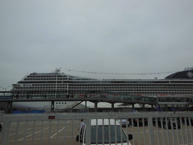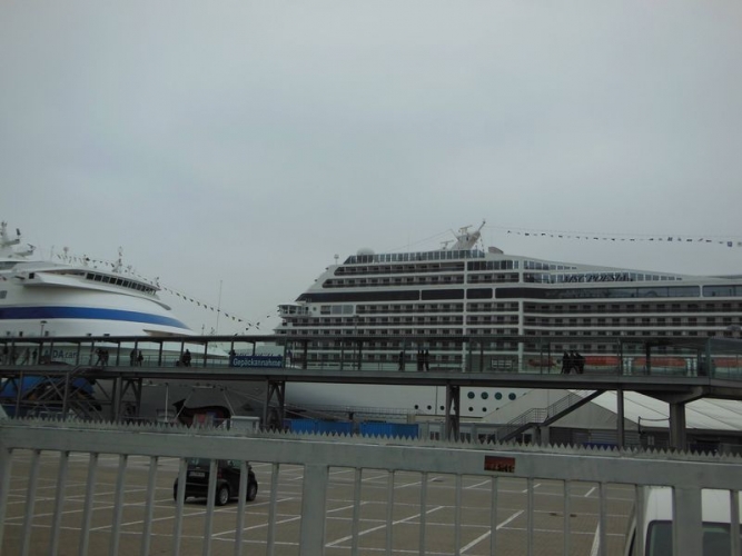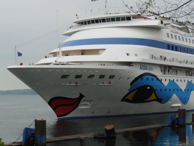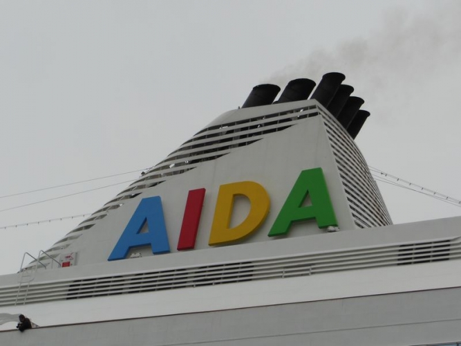 Am Kreuzfahrerterminal lag die Aida Cara sowie ein weiteres riesiges Kreuzfahrtschiff. Dagegen war die Aida verhältnismäßig klein.