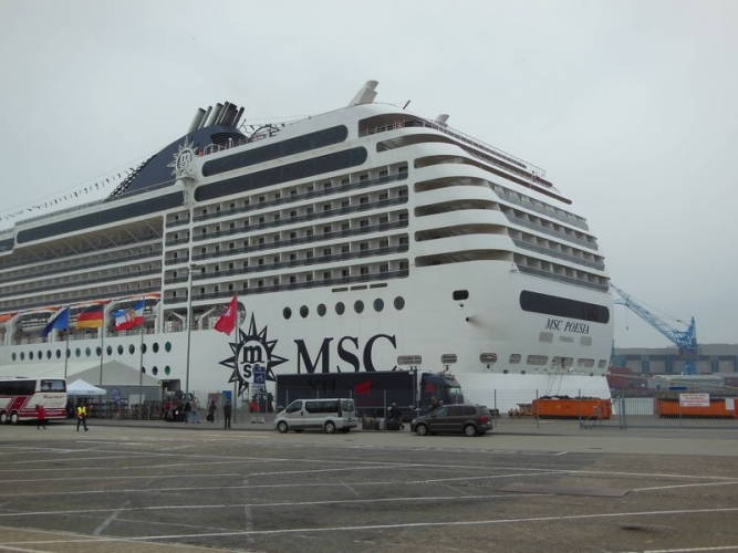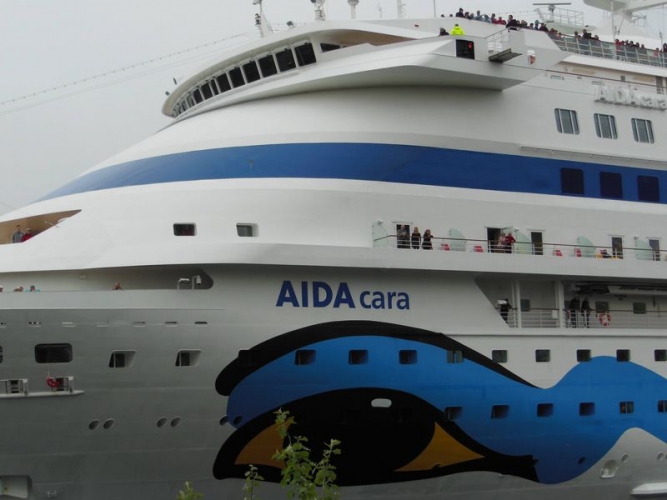 Am Kreuzfahrerterminal lag die Aida Cara sowie ein weiteres riesiges Kreuzfahrtschiff. Dagegen war die Aida verhältnismäßig klein.
