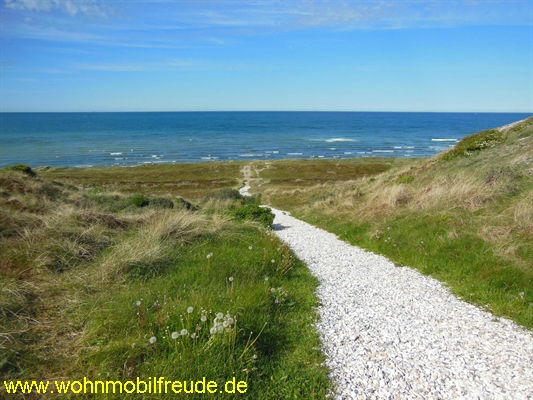 Der Platz liegt idyllisch. Von unserem Platz aus konnte man die Nordsee zwischen den Bäumen sehen. Zur Küste geht es ziemlich steil nach unten.