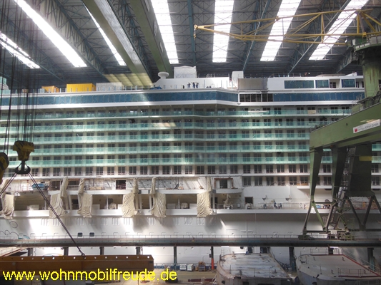 Hier der Blick ins Baudock mit dem aktuellem Kreuzfahrtschiffsbau