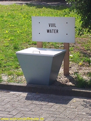 Grauwasserentsorgung nur via Eimer oder Kassette. Festinstallierte Fäkatanks müssen über eine Pumpvorrichtung verfügen.