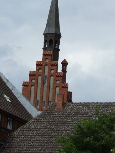 Ein älterer Bewohner machte uns auf den Hund mit Fuchsschwanz auf dem Rathaus aufmerksam. Er war sehr mitteilsam und erzählte, das es nicht genau bekannt ist, ob zunächst die Stadtväter schlaue Füchse waren und dann auf den Hund gekommen sind oder umgekehrt ?. Darüber hinaus erklärte er zur Namensfindung: Auf der Elbe verkehrten früher schon Lastensegler. Ein Kapitän eines solchen Seglers soll durch eine Windboe seine Mütze vom Kopf verloren haben. Diese trieb dann in der Elbe. Der Kapitän wies seine Mannschaft mit den Worten „De Mütz“ an, die Mütze zu bergen. Aus „De Mütz“ wurde dann angeblich Dömitz ?