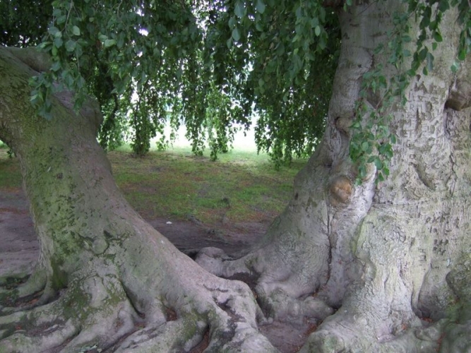 Interessant waren auch zwei dicht nebeneinander wachsende Bäume, die an einer Stelle mit einem starken Ast miteinander verwachsen sind. Ob es eine Laune der Natur oder eine Gärtnerleistung war, ist nicht bekannt.