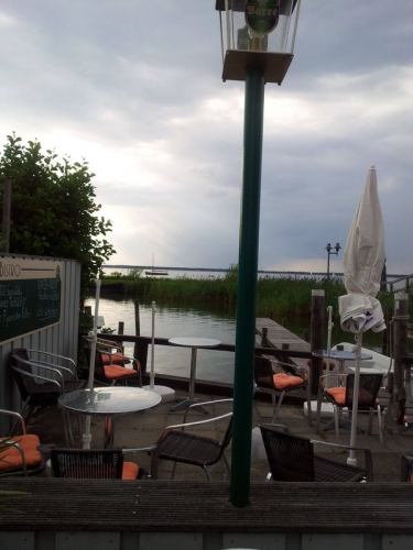 Pauls ehemaliger Regionalleiter betreibt ein kleines Hotel mit Bistro direkt am Steinhuder Meer. Ein Besuch im Bistro war somit eingeplant. Groß war die Wiedersehensfreude und es ergaben sich lange und intensive Gespräche. Hatte man sich doch über 20 Jahre nicht mehr gesehen. Von der Außenterasse hat man einen wunderschönen Blick auf das Steinhuder Meer.