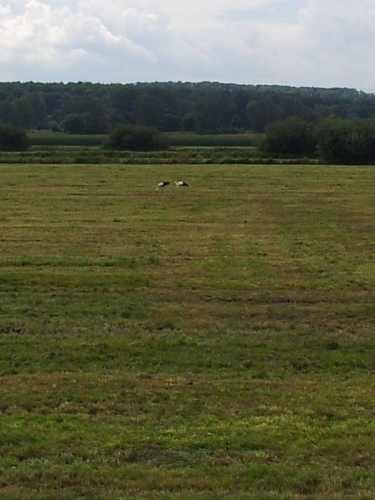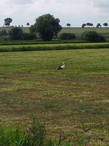 Am Samstag war es fast windstill und wir machten uns auf den Weg, das Steinhuder Meer per Fahrrad zu umrunden. Insgesamt fuhren wir 34 Kilometer auf einem sehr gut zu befahrenden Rundweg. Dieser führte uns durch den Naturpark. Wir waren erfreut die schöne Landschaft zu genießen und überrascht, als wir dann eine große Anzahl von Störchen auf den gemähten Wiesen sahen. Zählen konnte man die fast nicht. Wir kamen auf über 40 Exemplare. An anderer Stelle informierte eine Tafel über einen Teichbewohner, den wir jedoch im Original nicht zu sehen bekamen. Dafür wurden wir mit einem schönen Anblick entschädigt.