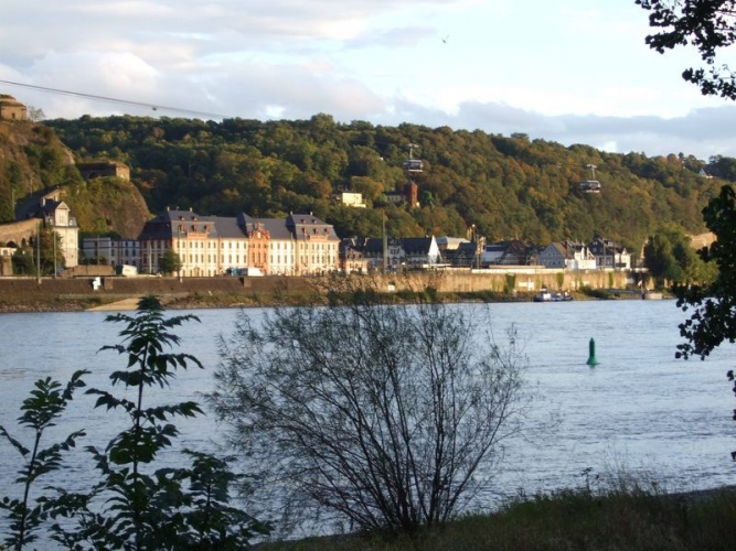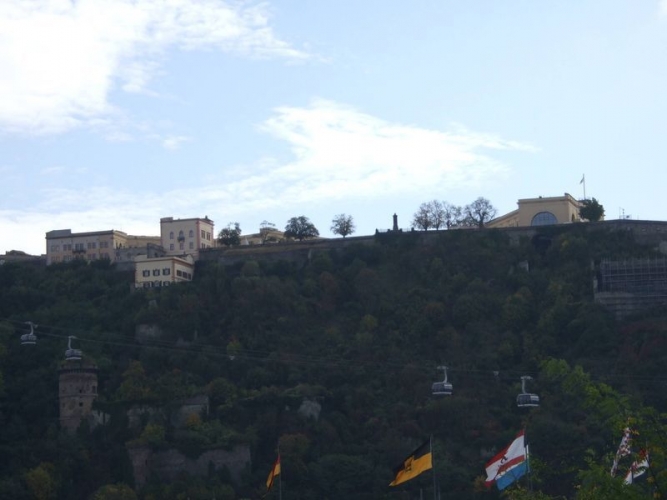 Wir hatten Glück und konnten einen wunderschönen Platz direkt am Rheinufer gegenüber der Festung Ehrenbreitstein belegen. Von unserem Platz aus konnten wir auch die Gondelbahn zur Festung aus beobachten. Diese nutzten wir später auch, um zur Festung zu gelangen. Wir wurden mit herrlichen Ausblicken verwöhnt.