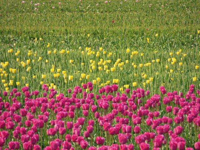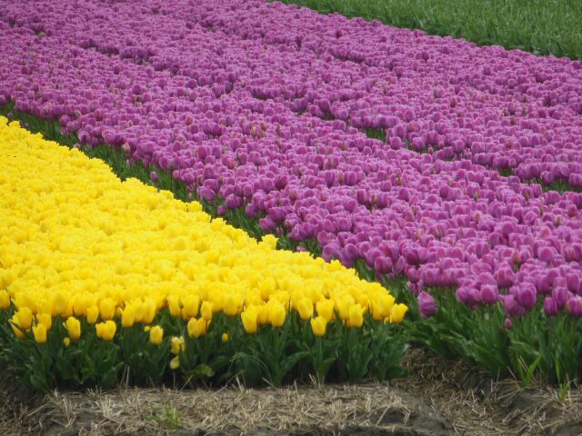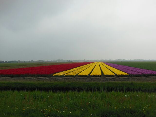 Blumenfelder schon abgemäht d.h. die Blütenköpfe sind zum besseren Wachstum und Vermehrung der Blumenzwiebeln entfernt worden.