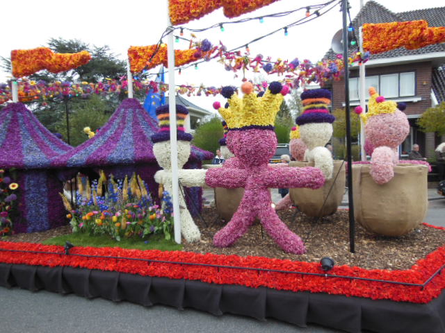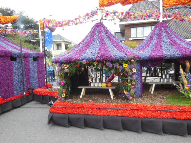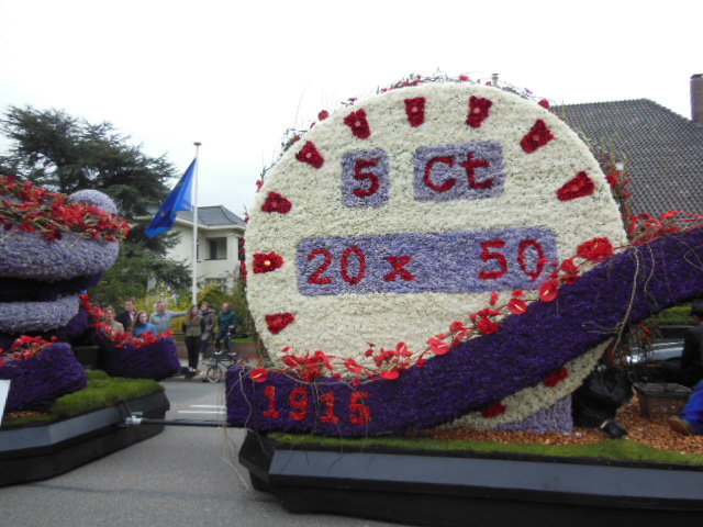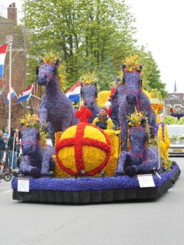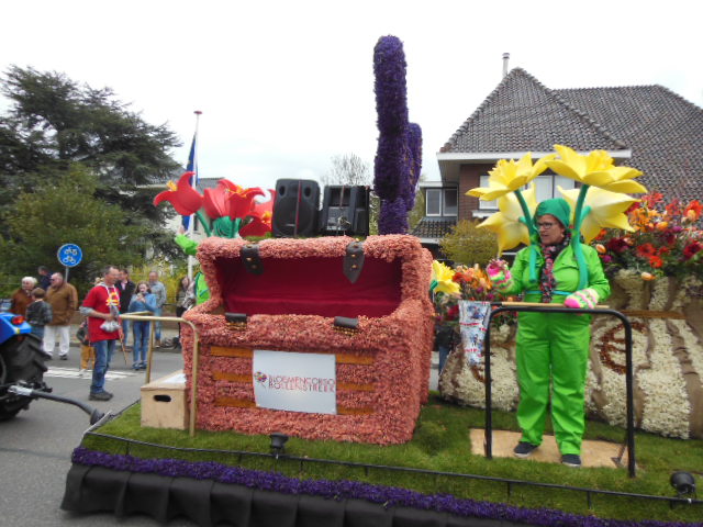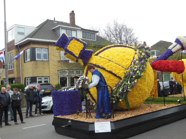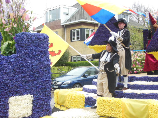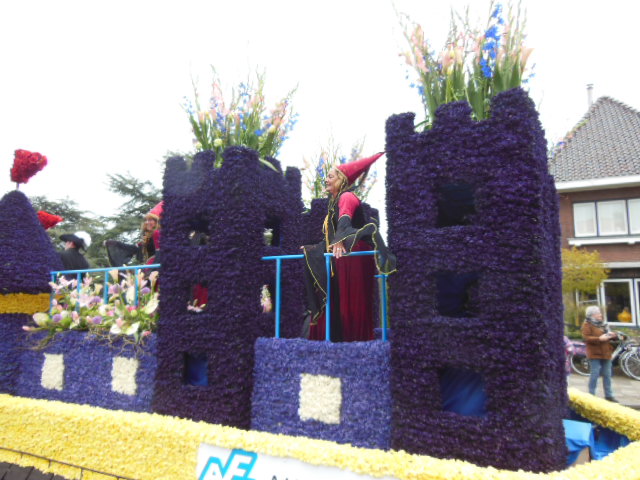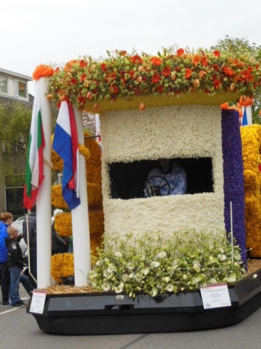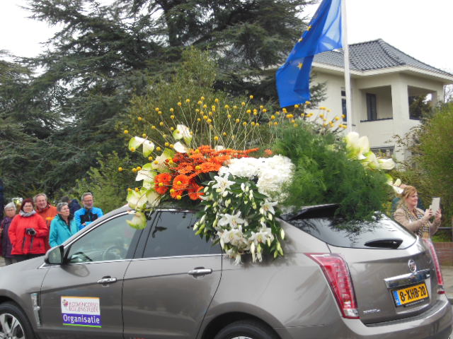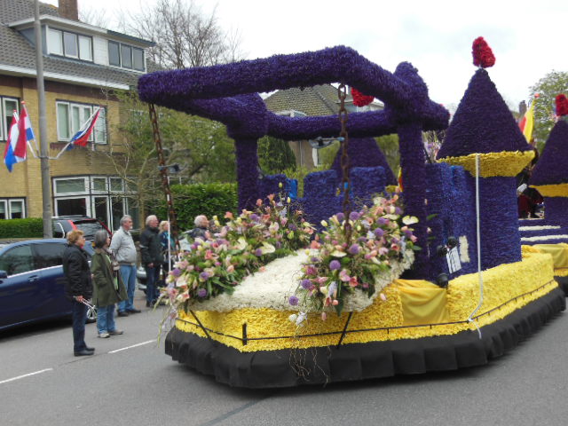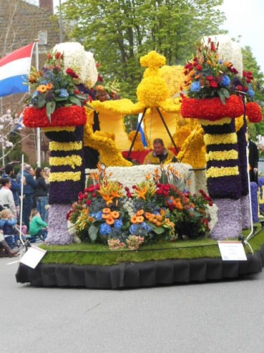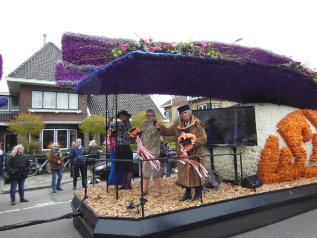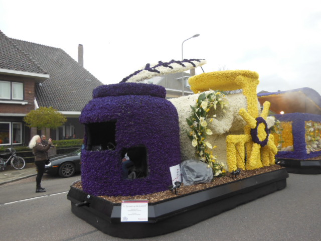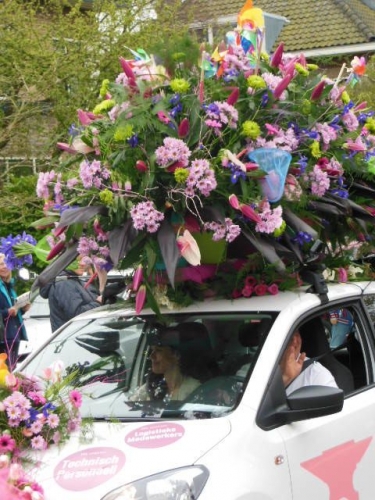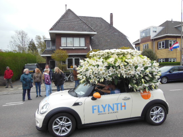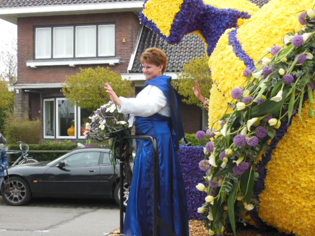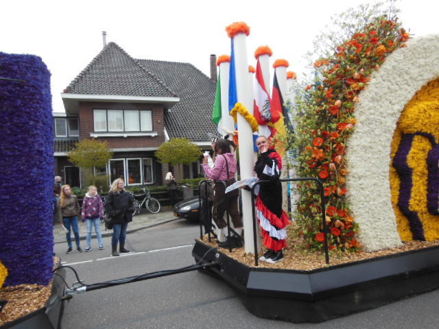 Alle waren mit echten Blumen dekoriert. Ähnlichen Umzug, in kleinerem Rahmen dann aber mit Papierblumen kannten wir bereits aus Appingedam.