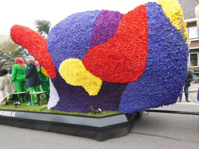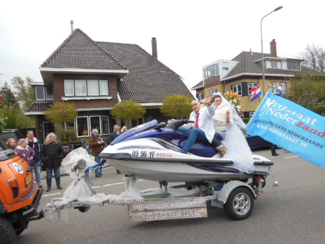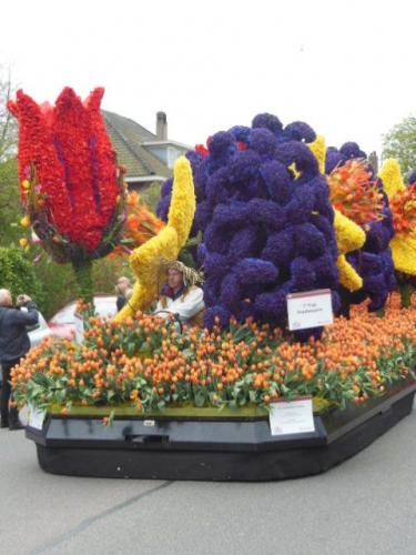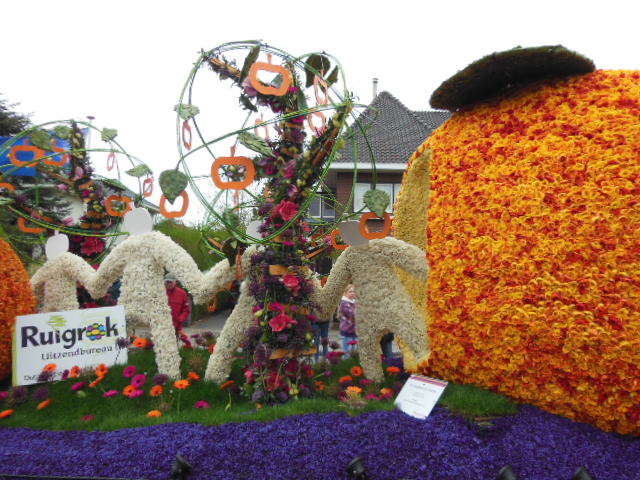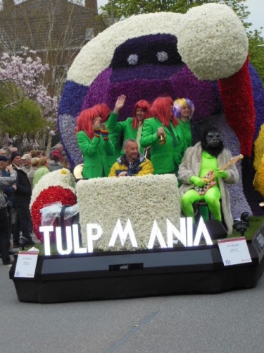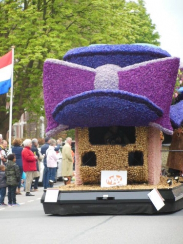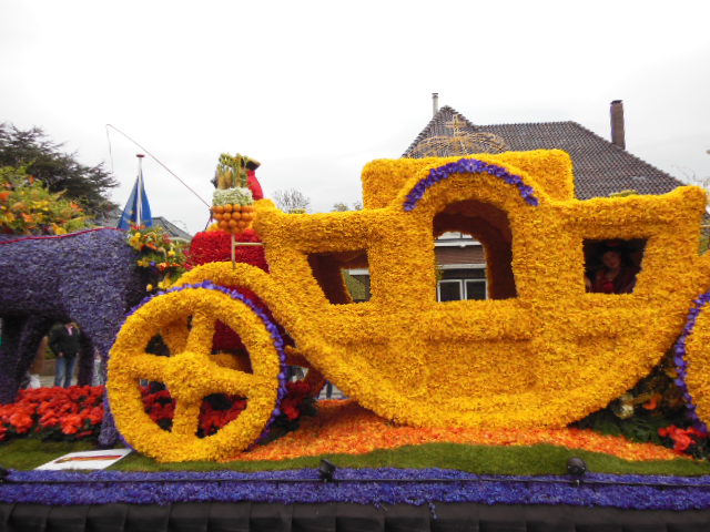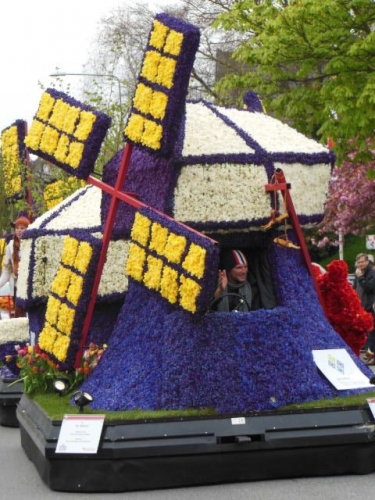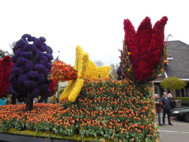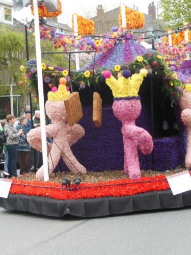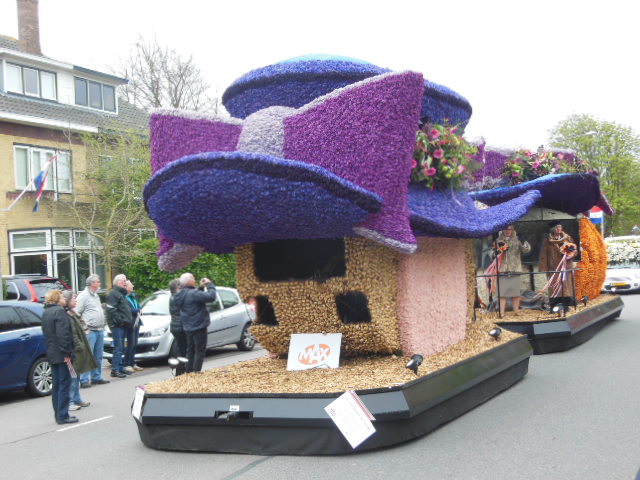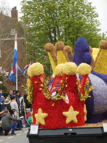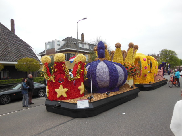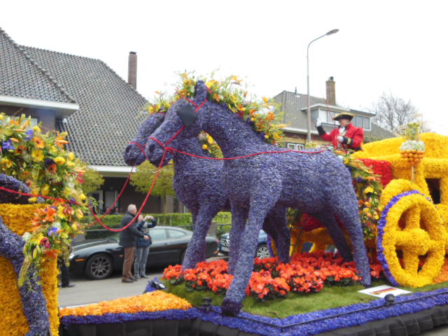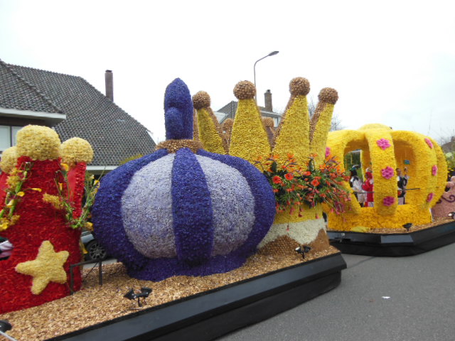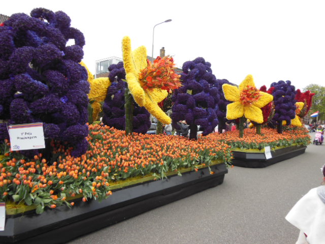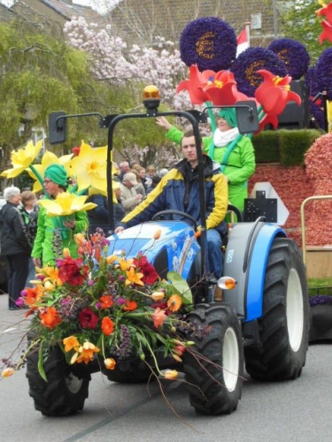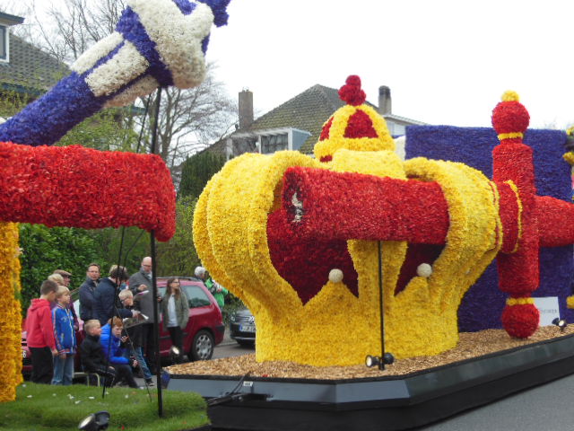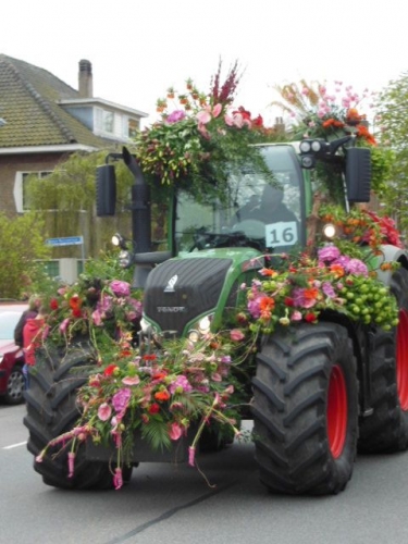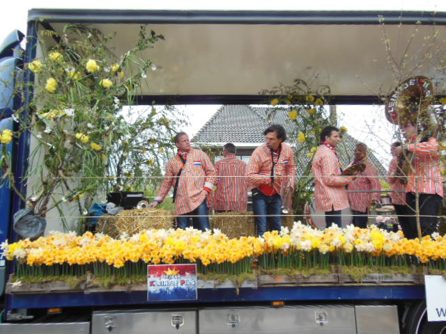 Alle waren mit echten Blumen dekoriert. Ähnlichen Umzug, in kleinerem Rahmen dann aber mit Papierblumen kannten wir bereits aus Appingedam.