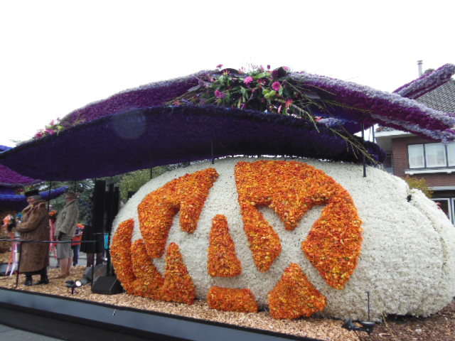 Alle waren mit echten Blumen dekoriert. Ähnlichen Umzug, in kleinerem Rahmen dann aber mit Papierblumen kannten wir bereits aus Appingedam.