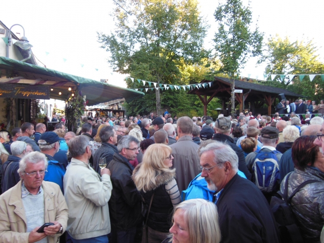 Für uns war es die erste Teilnahme an solch einem Ereignis. Gemeinsam mit unseren Freunden ging es zu Fuß nach Erden. Gegen 18.00 Uhr sollte die Weinkönigin das Fest eröffnen. Diese wurde von einem Musikzug begleitet.