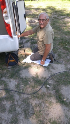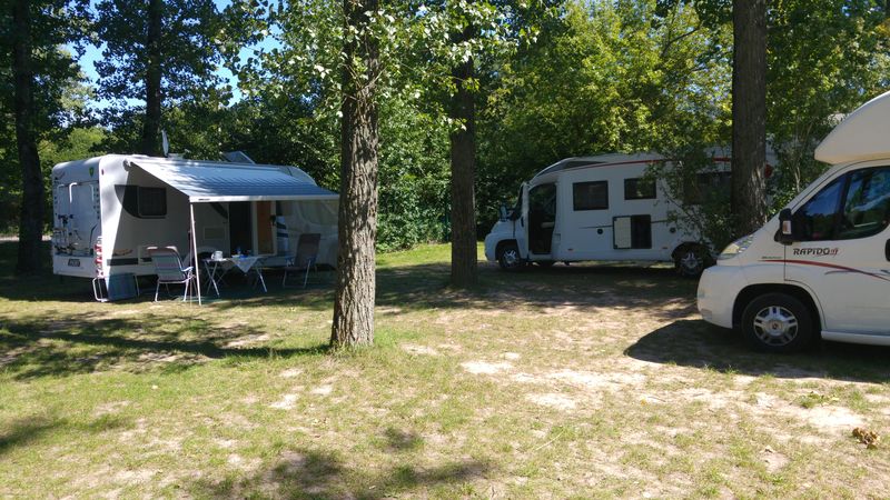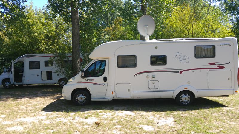 Mit ein wenig Verzögerung konnten wir einfahren und fanden bei den Kollegen einen schönen Stellplatz unter Bäumen aber trotzdem mit Empfangsmöglichkeit für Satellitenfernsehen.