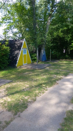 Wer ohne Mobil/Zelt anreist kann kleine Übernachtungshütten mieten: