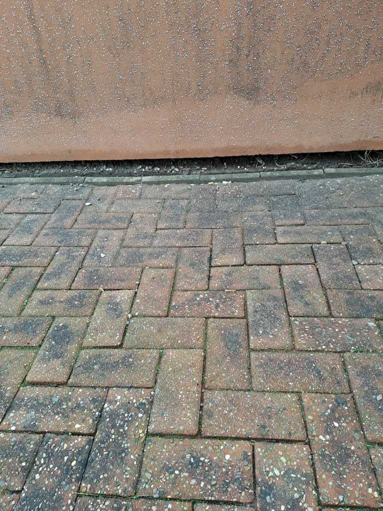 den man ja eigentlich auf Steinen nicht nutzen soll, da man die Oberfläche aufraut, versagte bei diesem Bewuchs. Ähnlich sah es auch auf der Terrasse und Zugang zur Garage aus.
